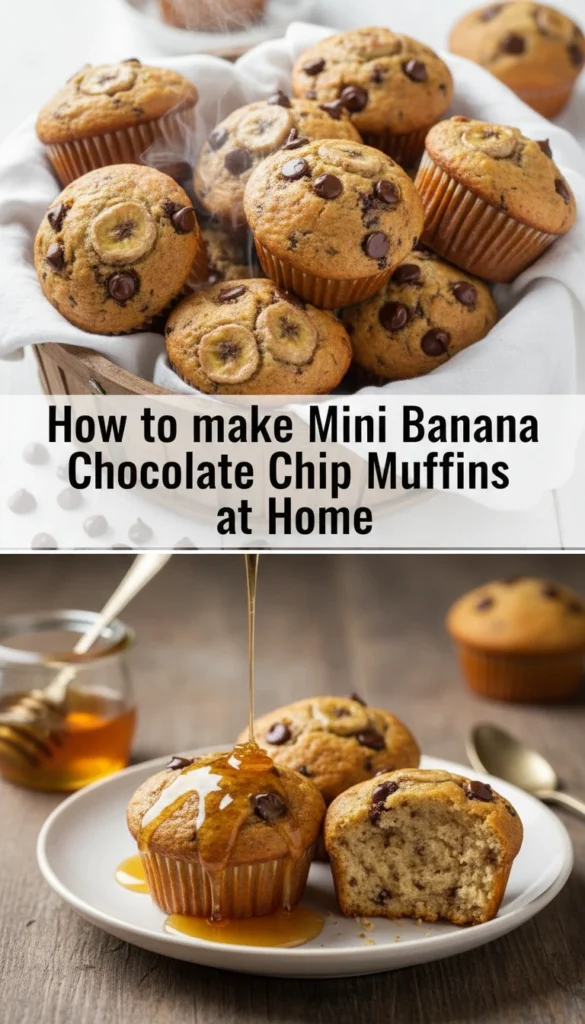 Now you know how to make yummy mini banana chocolate chip muffins. It’s time to try out your new baking skills. The secret to perfect muffins is using ripe bananas, not overmixing, and baking them just right.