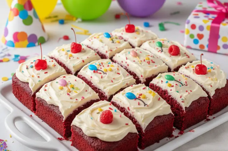 This red velvet sheet cake is not just tasty but also looks amazing. It’s sure to wow at any event.