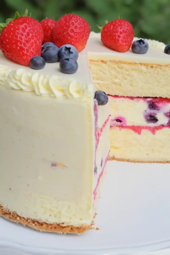 Combining two desserts into one, this Berry Cheesecake Cake layers rich cheesecake with Red Velvet cake. The addition of berries adds a fruity tartness, making it a fresh and indulgent dessert.