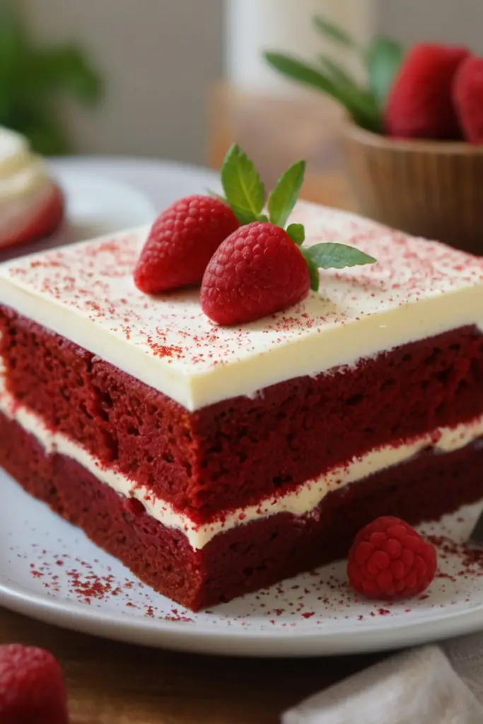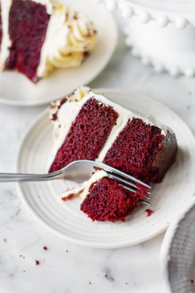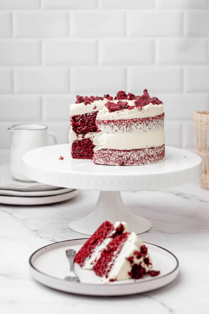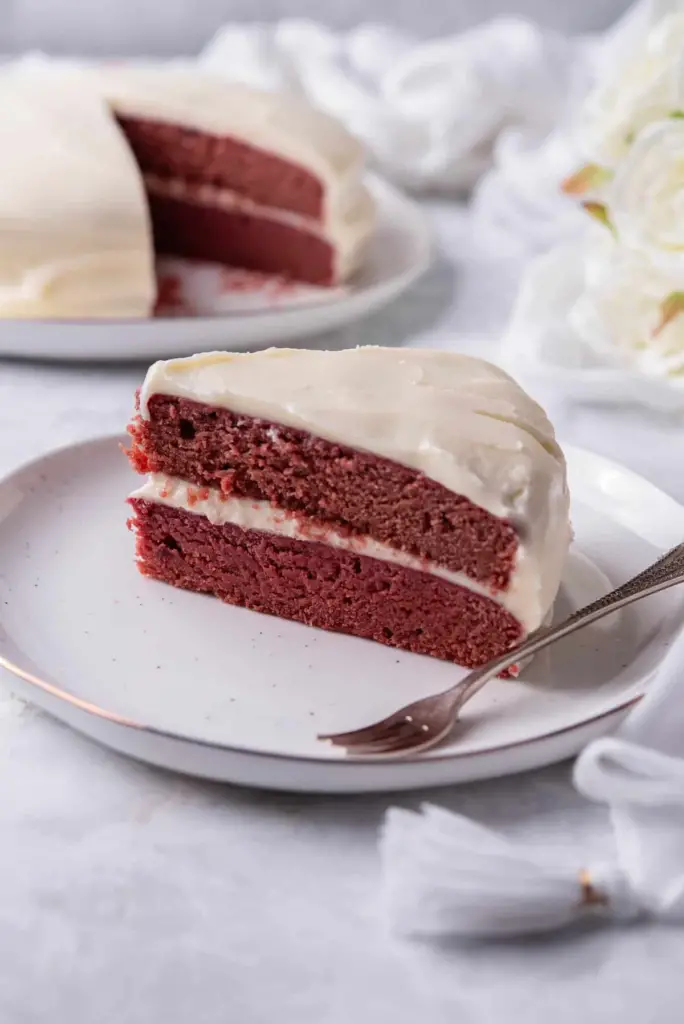A fantastic option for those following a plant-based diet, this Vegan Red Velvet Cake uses non-dairy ingredients but doesn’t skimp on flavor. You’ll still get that signature red hue and tender crumb, but with a vegan-friendly twist.