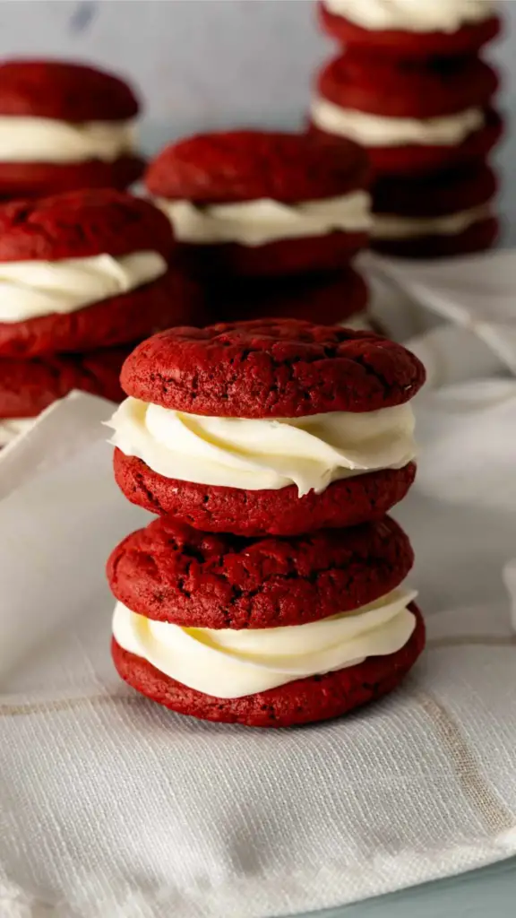 Combining two soft, fluffy Red Velvet cookies with a generous filling of cream cheese frosting, Red Velvet Whoopie Pies are perfect for those who love handheld desserts. They’re chewy, creamy, and utterly delightful.