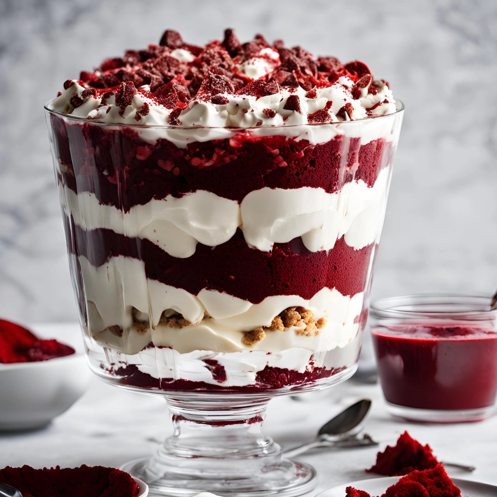A layered dessert that’s both delicious and visually striking, Red Velvet Trifle is made by layering chunks of Red Velvet cake, whipped cream, and sometimes fruit or custard. The layers create a beautiful presentation, making it an excellent option for gatherings.