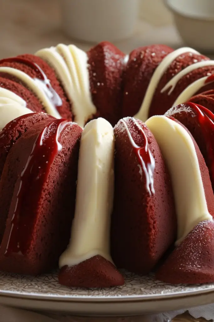 A beautiful twist on the traditional round Red Velvet Cake, the Bundt version creates a ring-shaped cake that’s both visually impressive and easy to slice. It’s perfect for gatherings and pairs beautifully with either a simple glaze or cream cheese frosting.